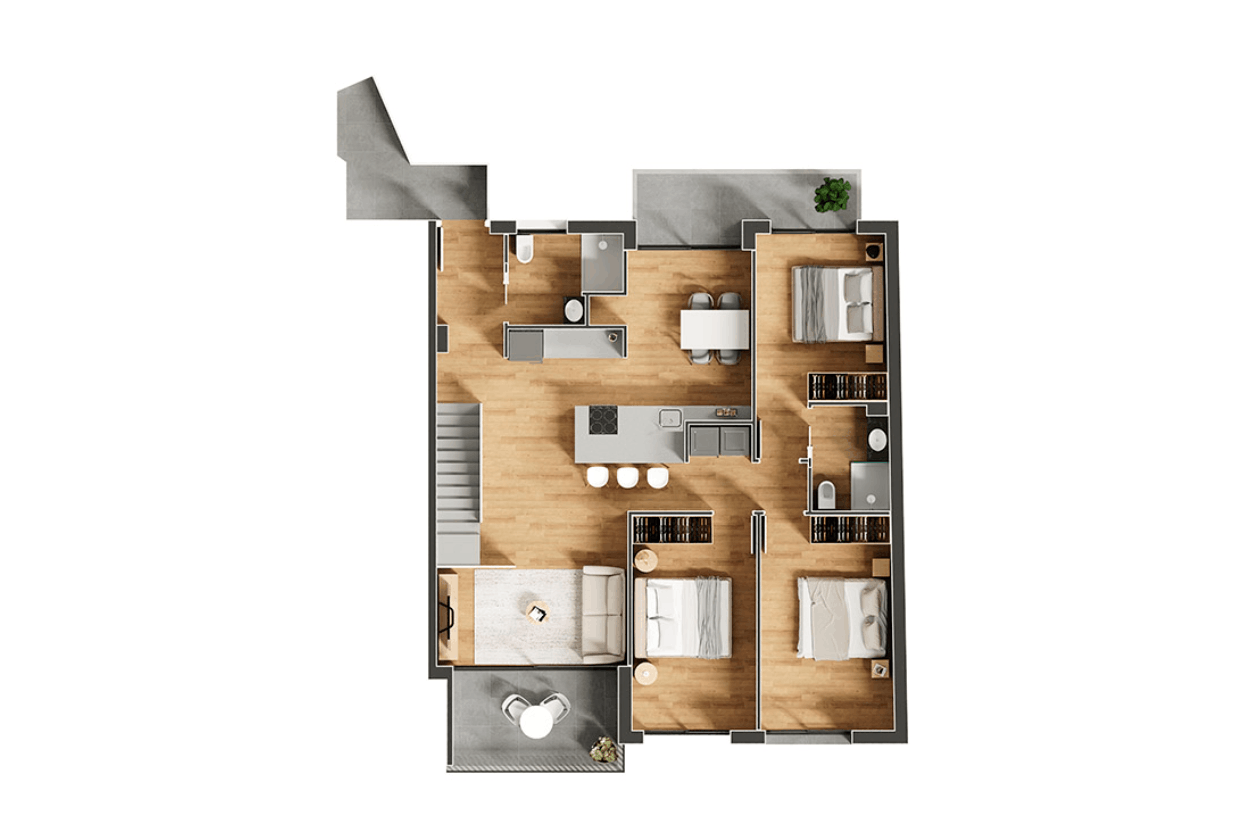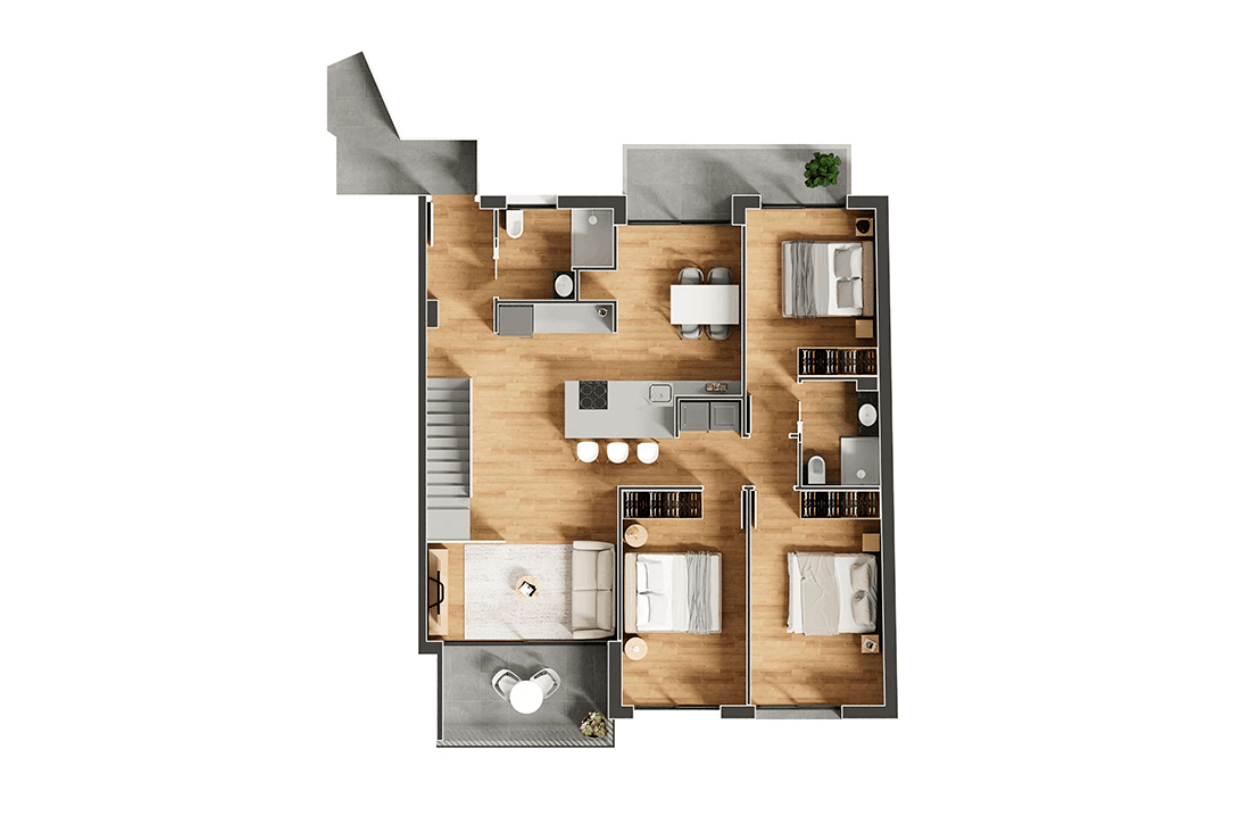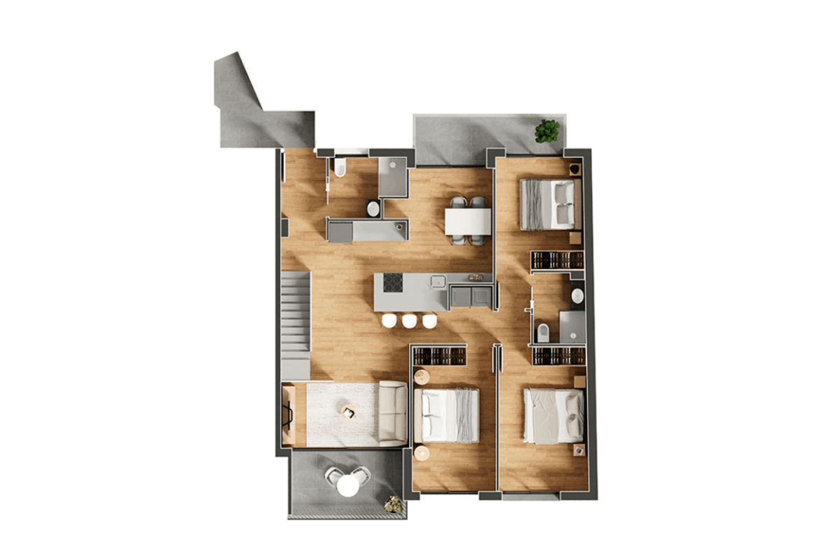 La zona de nit es distribueix en 3 habitacions (una de principal i dues dobles) i 2 banys, oferint una distribució funcional i còmoda per a la vida familiar, amb possibilitat d’habilitar una quarta habitació segons necessitats.
