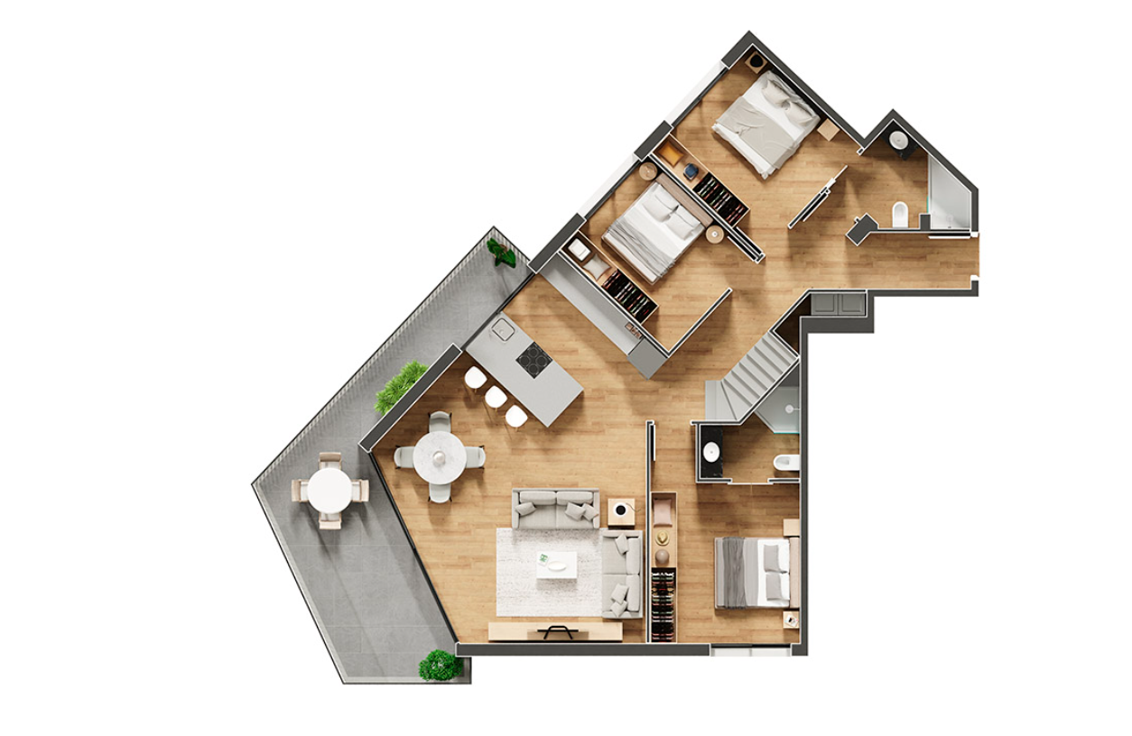 Un habitatge amb personalitat, grans espais interiors i una excepcional superfície exterior, pensada per gaudir de la llum, la privadesa i el confort en un entorn privilegiat.